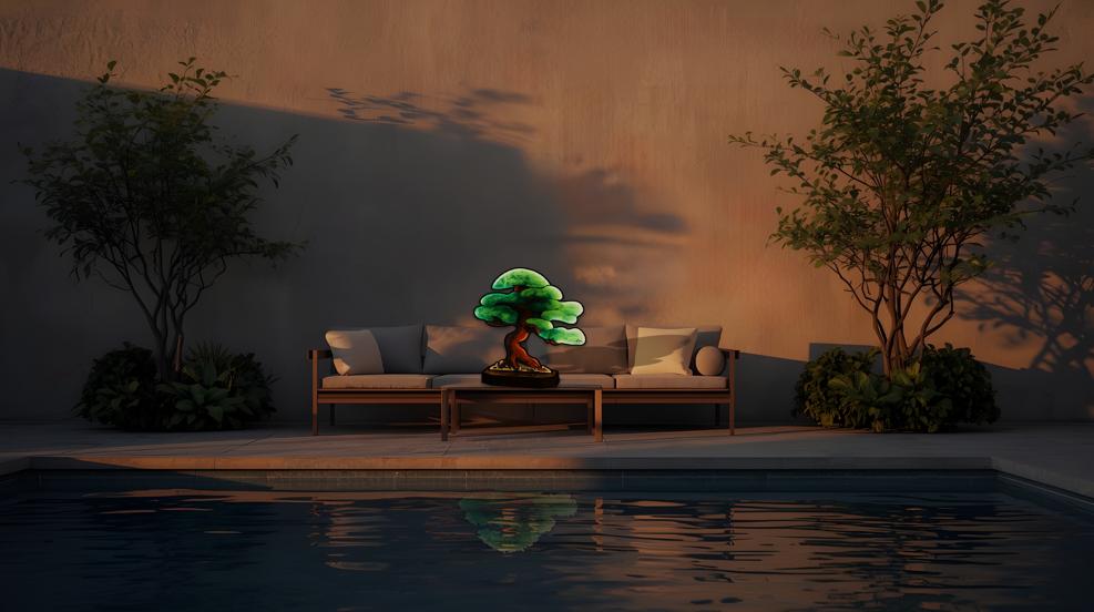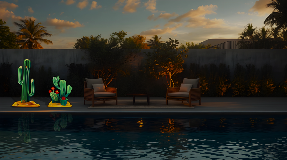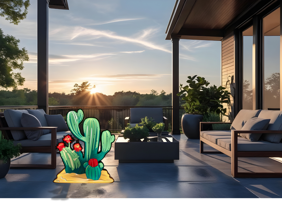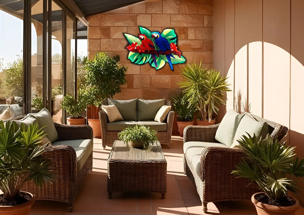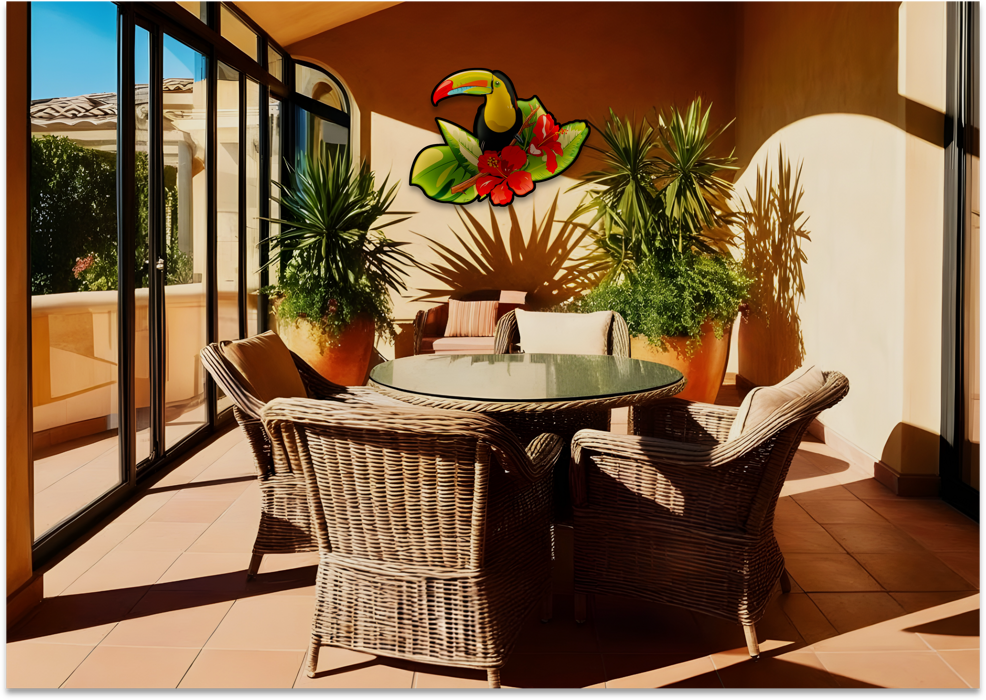 Opere luminose con base illuminata autoportante ispirate al vibrante mondo tropicale. Raffigurano una natura dai colori sgargianti, le cui figure sinuose danzano trasportate dall'energia del sole. Toni variopinti si mescolano in un caleidoscopio di emozioni, trasportandoci in un universo di meraviglia e bellezza senza tempo. Ideali per arredare un terrazzo, una zona esterna o per donare un tocco luminoso e raffinato alle vostre aree relax.