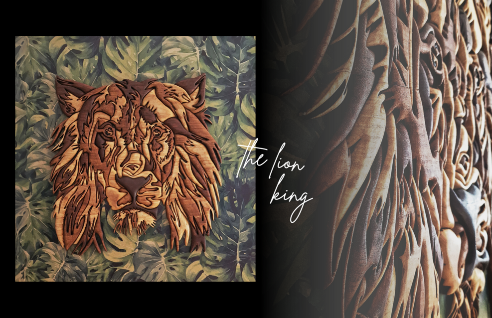 Mosaici da cui emergono volti sezionati come piccoli pezzi di un puzzle, poi ricomposti per dar vita a disegni espressivi e pieni di volume. Il plexiglass, con i sui toni sgargianti, ed il legno, con le sue venature profonde, talvolta si mescolano creando giochi di trasparenza e solidità. Mosaici luminosi in plexiglass, oppure in legno smussato a mano, o ancora ibridi che includono entrambi i materiali.