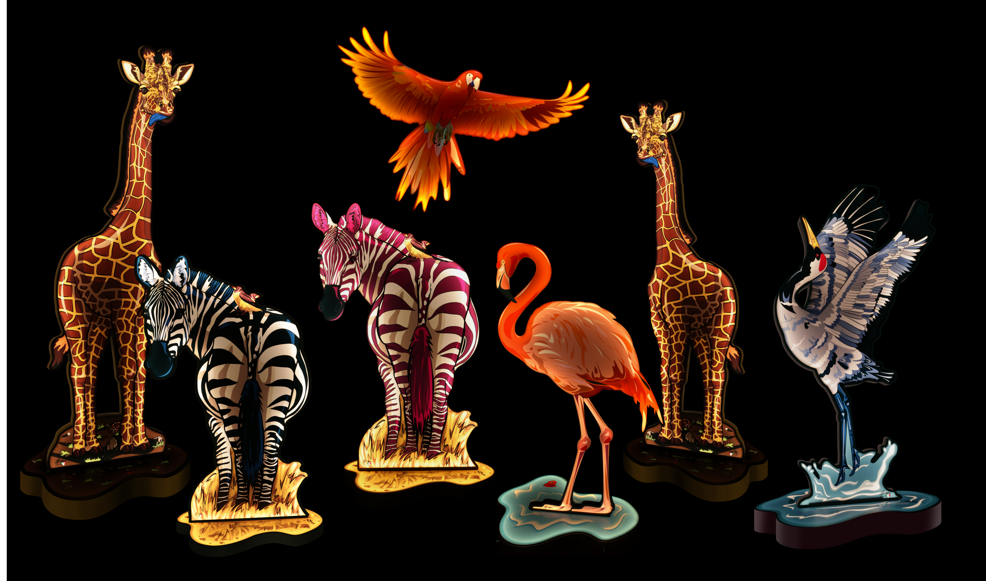 Un viaggio attraverso l'animo selvaggio della natura, un tributo alla sua bellezza ineffabile e alla sua eterna misteriosità. Una collezione di opere luminose con base illuminata autoportante raffiguranti il mondo animale, rappresentato con colori audaci e sfumature inattese. Posizionate in una zona living, uno spazio esterno o uno studio, conferiscono carattere e animano gli spazi, creando atmosfere inaspettate ed abbracciandoti con la loro avvolgente luminosità.